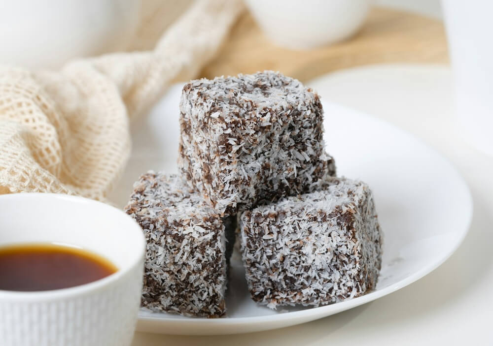 四角く切ったスポンジケーキをチョコレートでコーティングし、その上から乾燥ココナッツをまぶした伝統的なお菓子です。