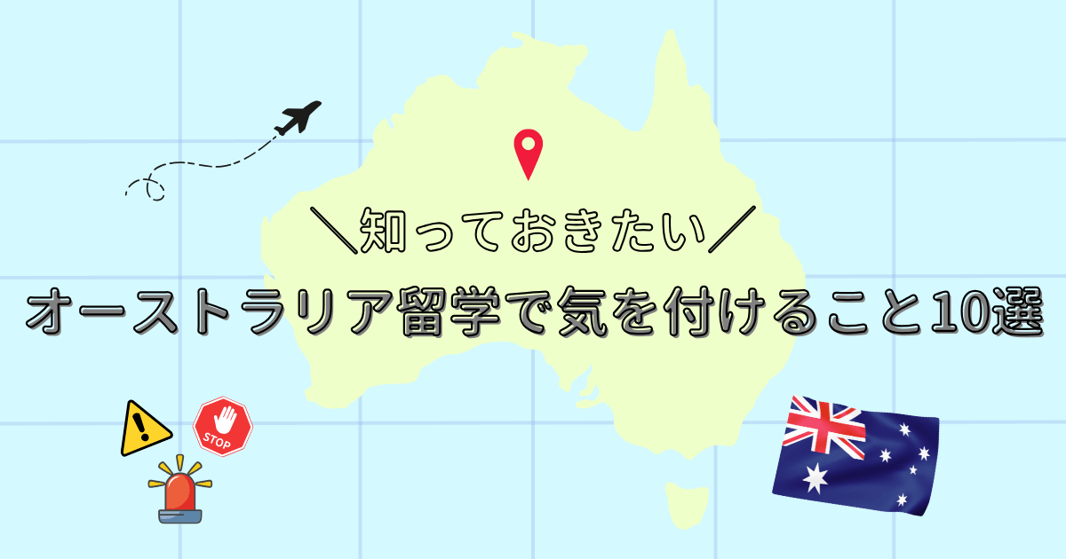 そこで今回は、オーストラリア留学で気を付けたいポイント10項目と、オーストラリア留学経験者の筆者が実際に行った対策や対処法もあわせてご紹介します。
